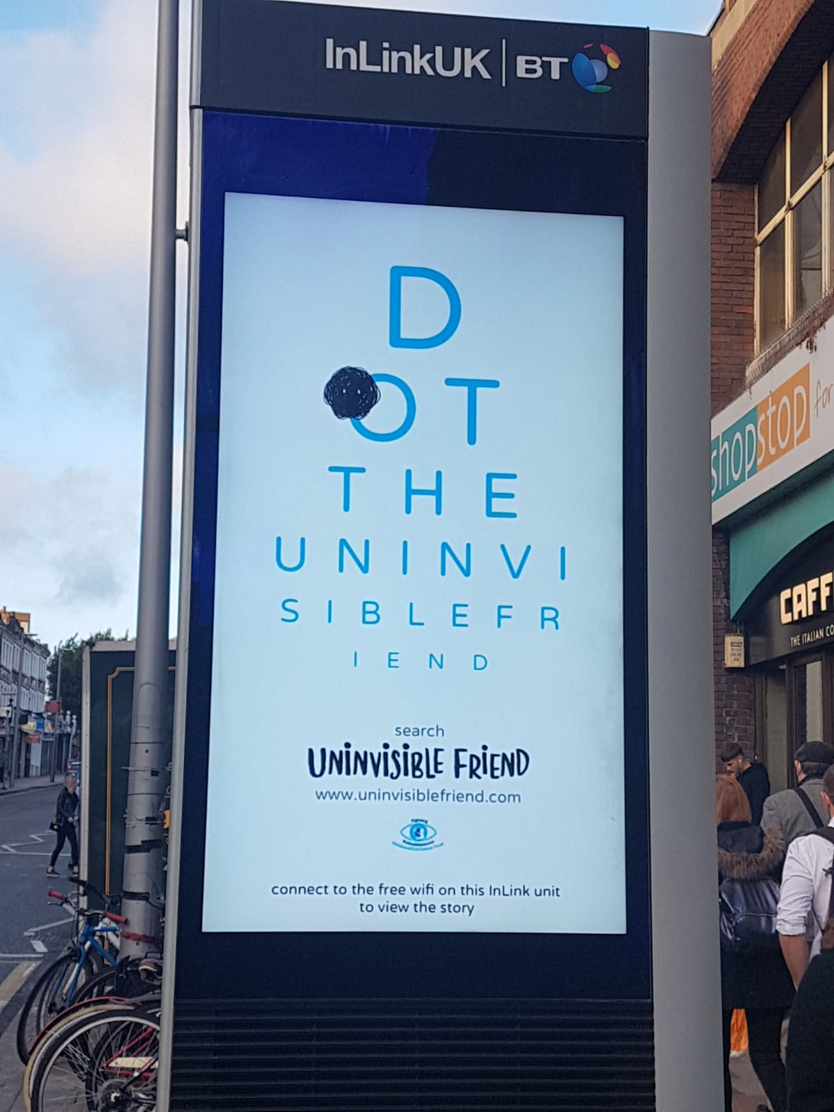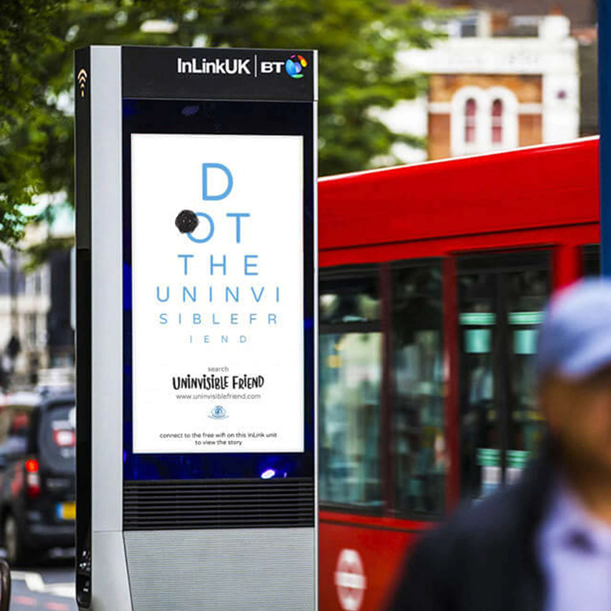 A digital poster campaign on wifi units also made Dot visible, and prompted passers by to visit the interactive story. We also took a giant blimp of Dot into central London to block the view of passers by and let them know who Dot was.