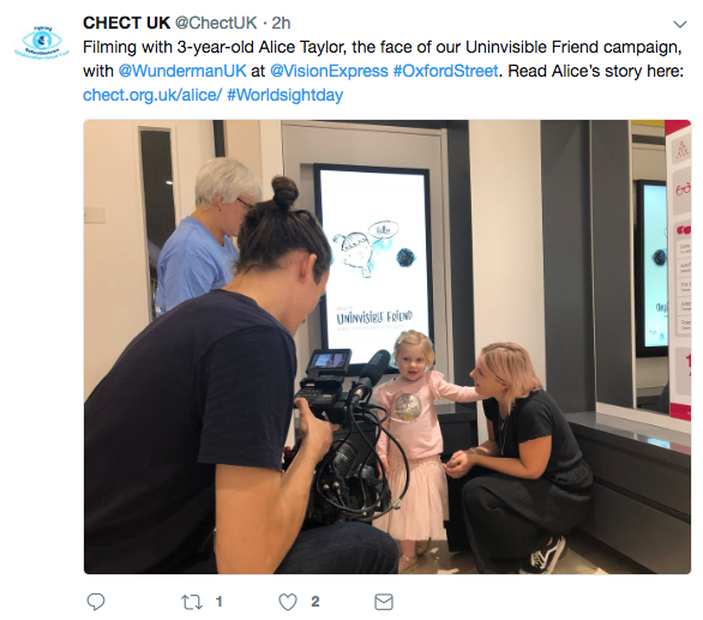 Drawing on a real-life story of a young girl called Alice, the symptoms were brought to life through Alice's story of Dot, her Uninvisible Friend - or the black spot she lived with which only she could see. Through a multi-channel campaign on World Sight Day, we rolled out a number of activations which helped parents see and understand the importance of Dot.