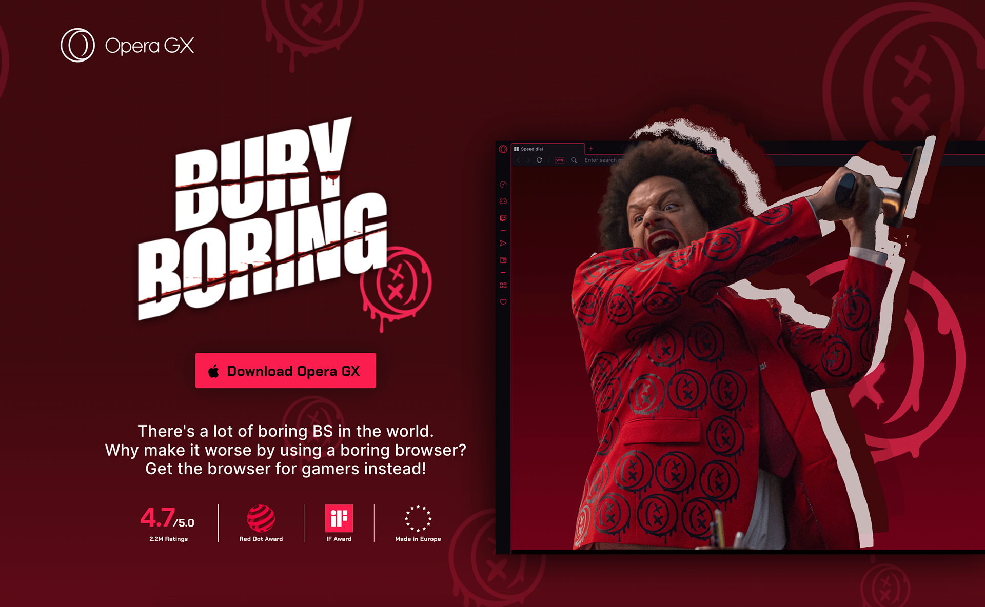 Embracing Opera's irreverent, distinct and anti-boring personality, we cast renowned comedian and actor Eric Andre to shake up the perception of typical boring and problematic browsers.