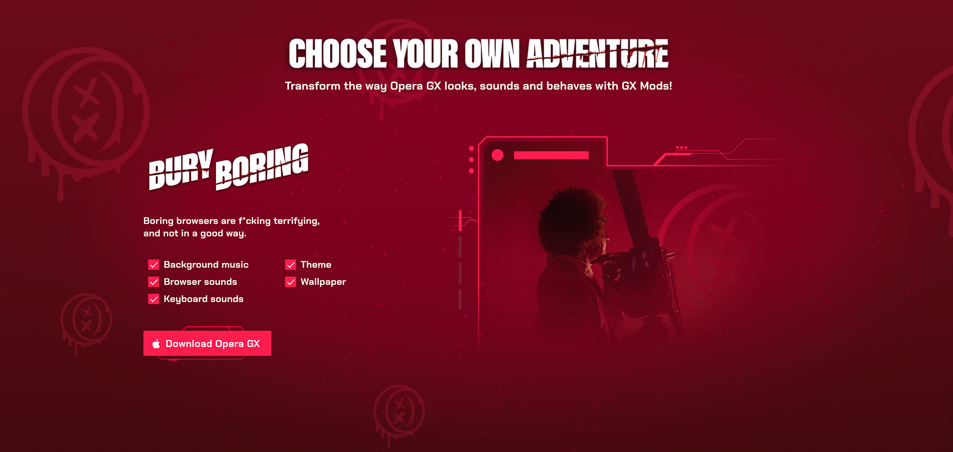 Bury Boring lived across digital and social and went on to become Opera GX's brand identity including an in-browser skin modified with an Eric Andre Bury Boring mod.